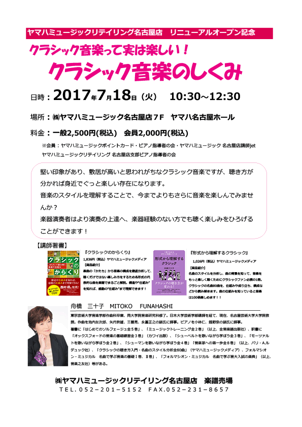 2017年7月18日(火)「クラシック音楽って実は楽しい!クラシック音楽のしくみ」チラシ